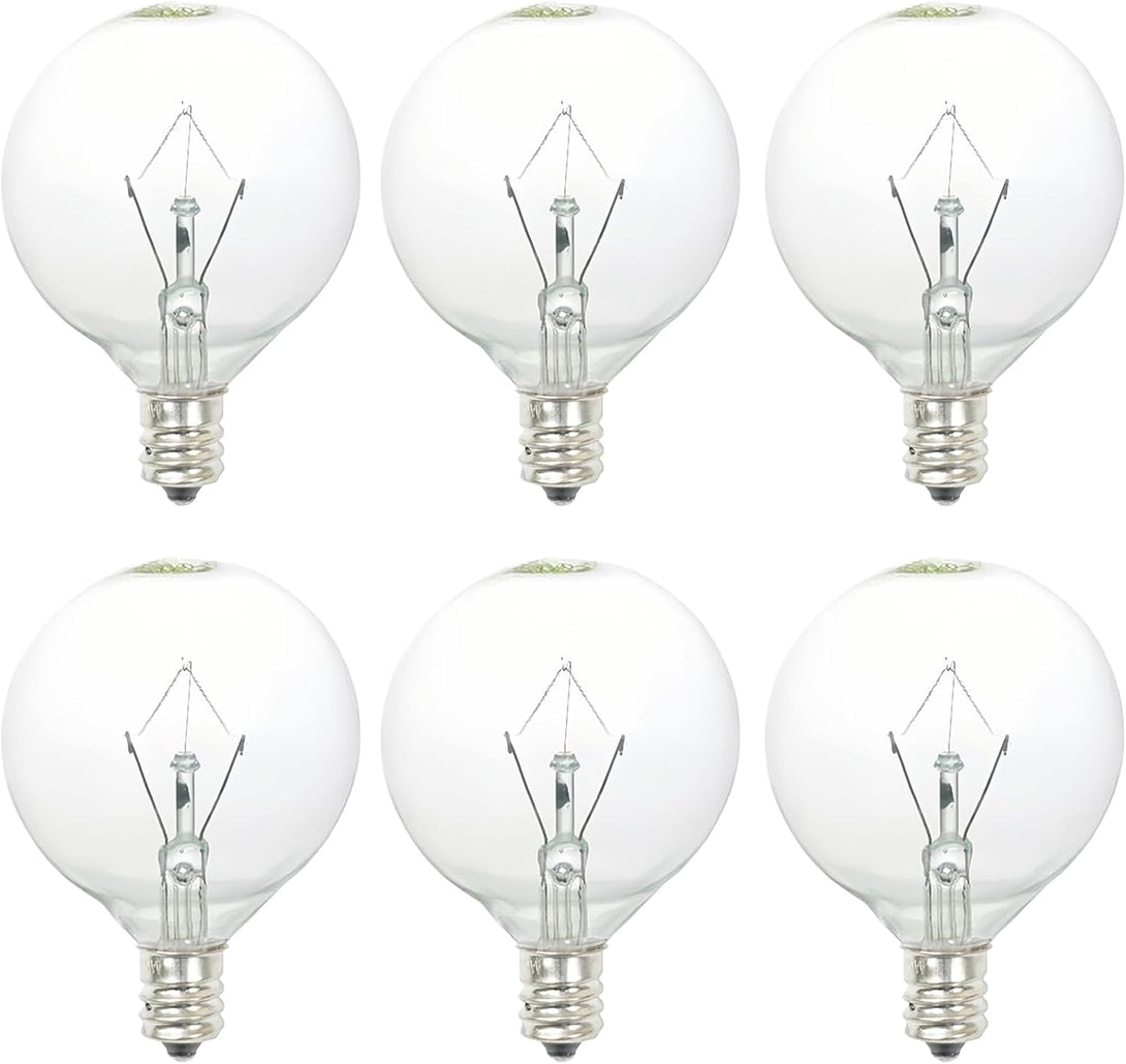 40W Light Bulbs,Wax Warmer Bulbs,E12 Candelabra Base 120 Volt round Light Bulbs for Full Size Scentsy Warmer ,Wax Melt Warmer,Chandelier Table Lamp Wall Sconces ,Soft Warm White,G50/120V,6 Packs