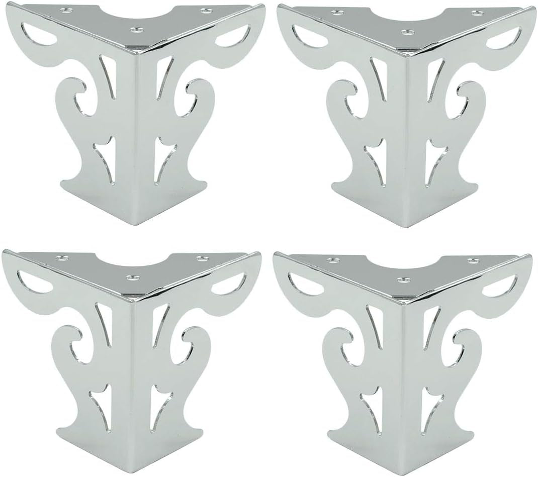 PHITUODA 4pcs 3-Inch Hollow Out Modern Furniture Sofa Legs, Bookcase Feet Triangle Feet for Sofa Table Cabinet Cupboard Bed Couch Chair, Polished Chrome