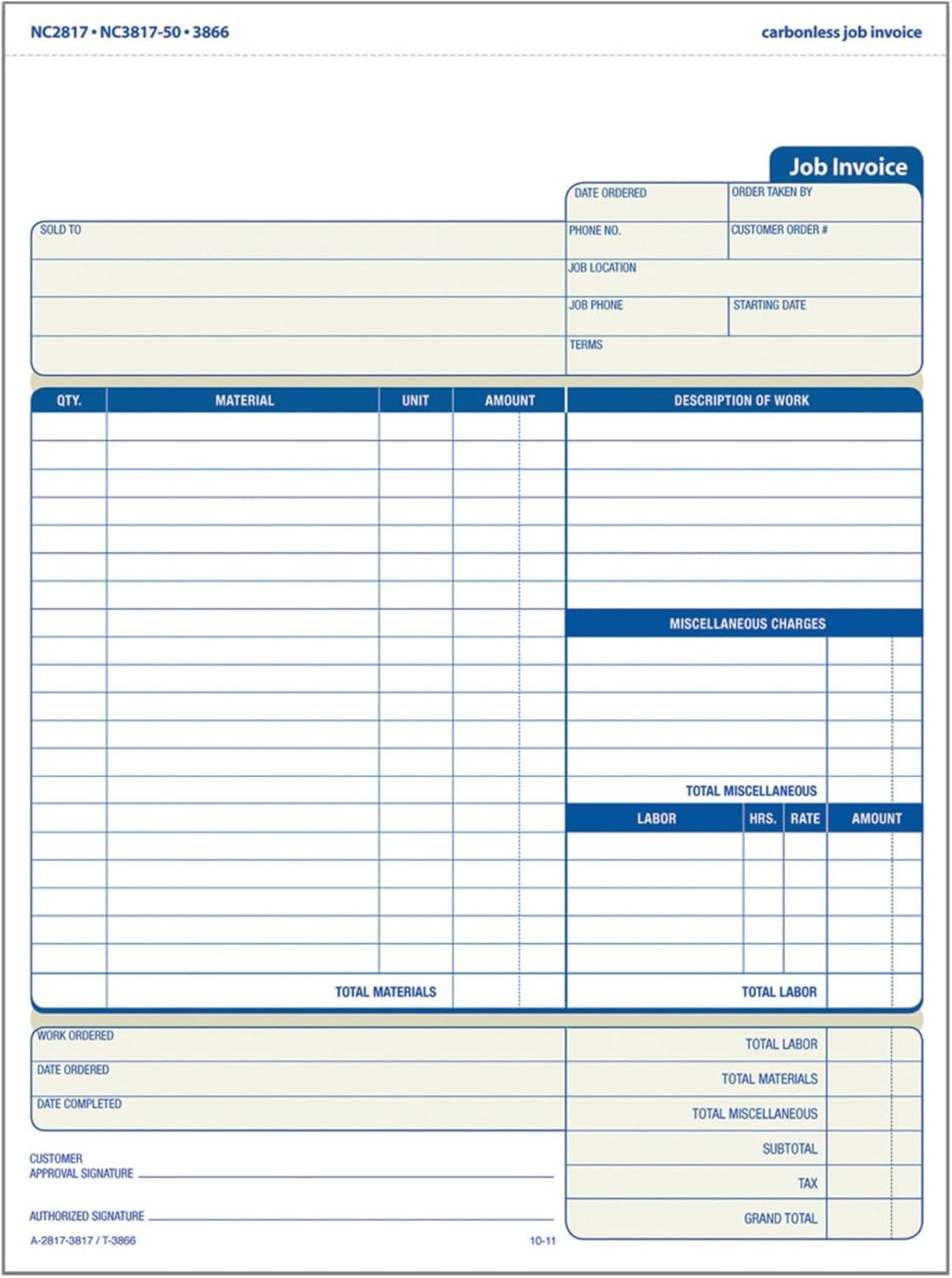 • DETAILED DESCRIPTIONS: Letter-sized form provides lots of room for descriptions, materials costs, labor and miscellaneous charges