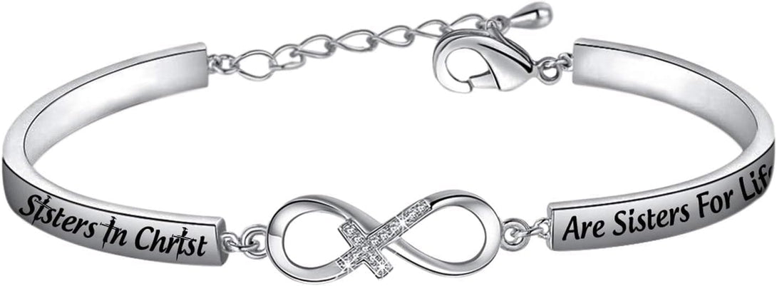 AKTAP Religious Christian Bracelet Sisters Christ Are Sisters for Life Christening Baptism Gifts for Women (Christian Cuff Bracelet)