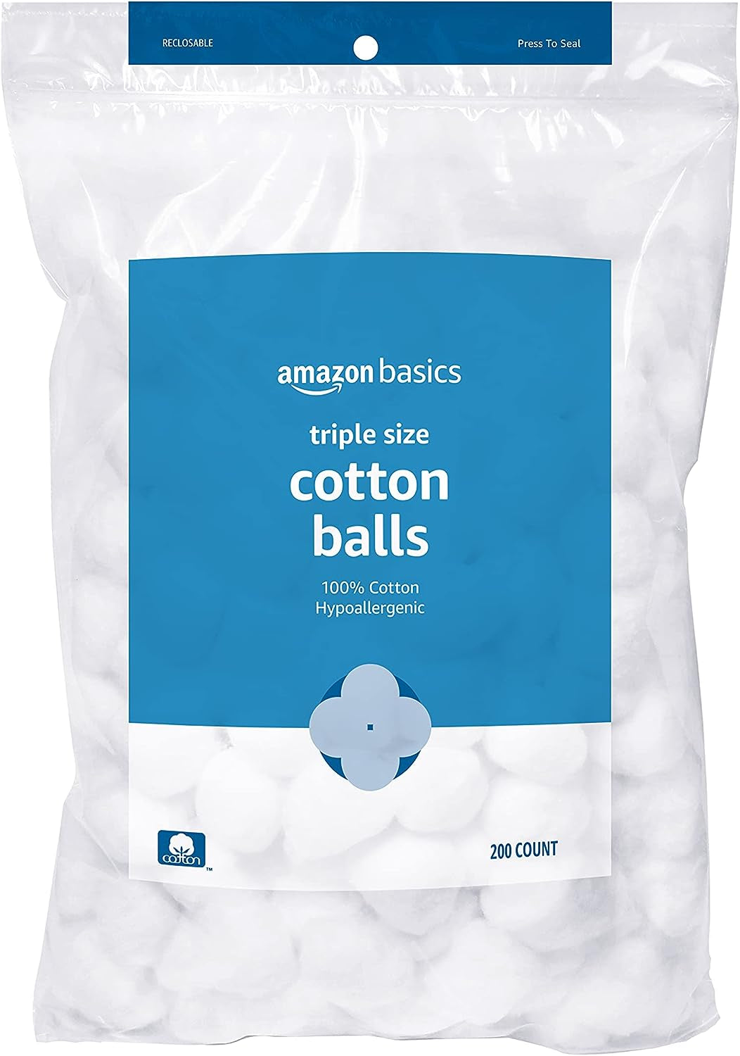 Amazon Basics Cotton Balls, 200ct, 1-Pack (Previously Solimo), 100% Cotton and Hypoallergenic and Ideal for makeup application and removal
