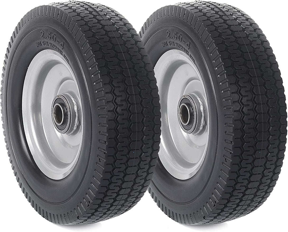 AR-PRO (2-Pack) 8-Inch Solid Wheel Replacement - 2.50-4" Flat Free Tire and Wheel with 5/8 Extra 3/4 Bearings and 2.2" Offset Hub - Compatible with Hand Truck, Generator, Gorilla Carts