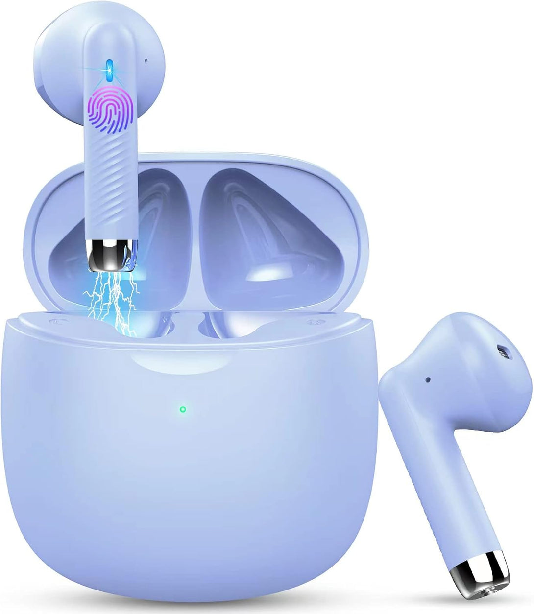 Jxrev Wireless Earbuds, Bluetooth 5.3 Headphones in Ear with Noise Cancelling Mic, Earbuds Stereo Bass, IP7 Waterproof Sports Earphones, 32H Playtime USB C Charging Ear Buds Purple for Android Ios