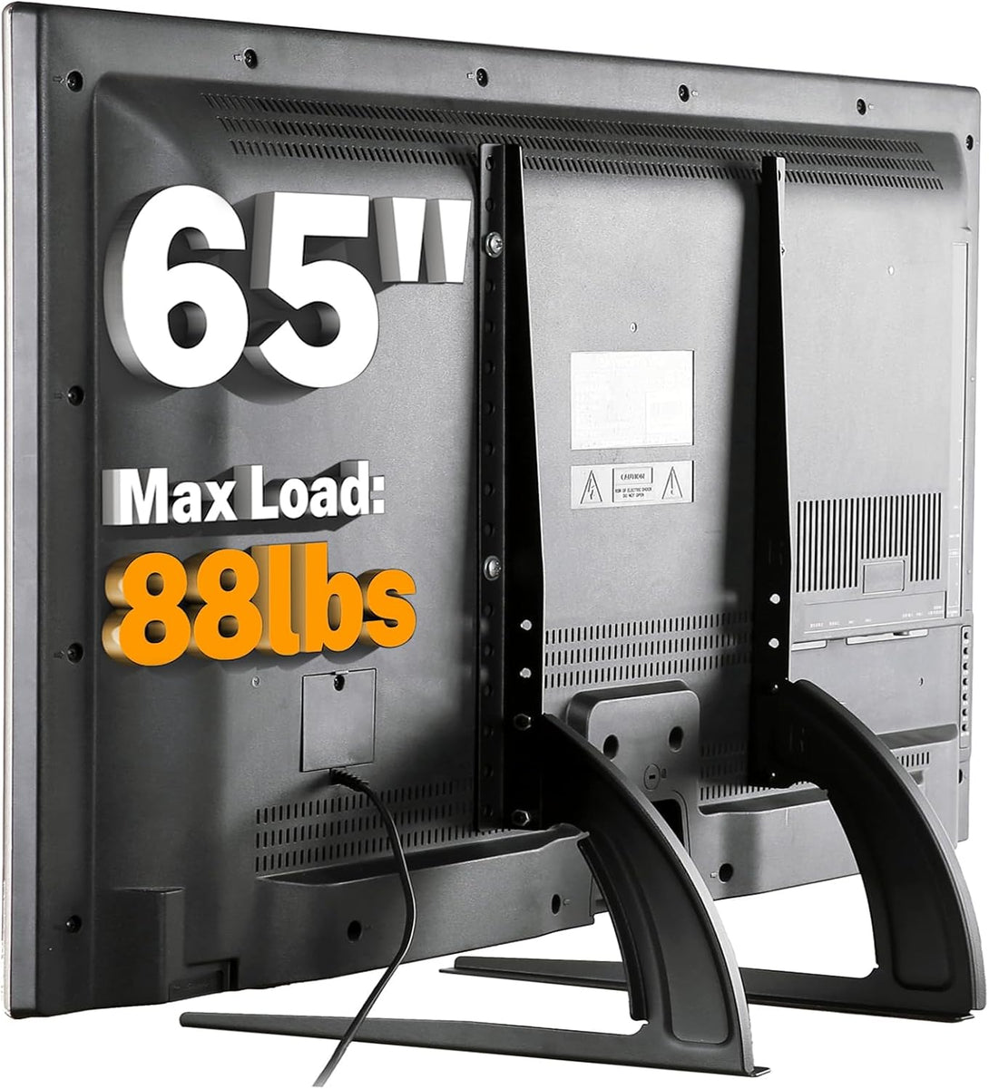- Highly Compatible TV Stand for Most 22-65 TVS : The universal tv stand base fits most 22 32 37 40 42 47 50 55 65 inch TVs and most brands of TVS except Samsung. The mounting holes are on the back of on the back of your TV from 200x100mm up to 800x500mm. Please check your TV's mounting holes to ensure compatibility before purchasing. Notice: If your TV is above 42 inches, please confirm your VESA is better above 200x200mm. Otherwise, the legs will be too close.
